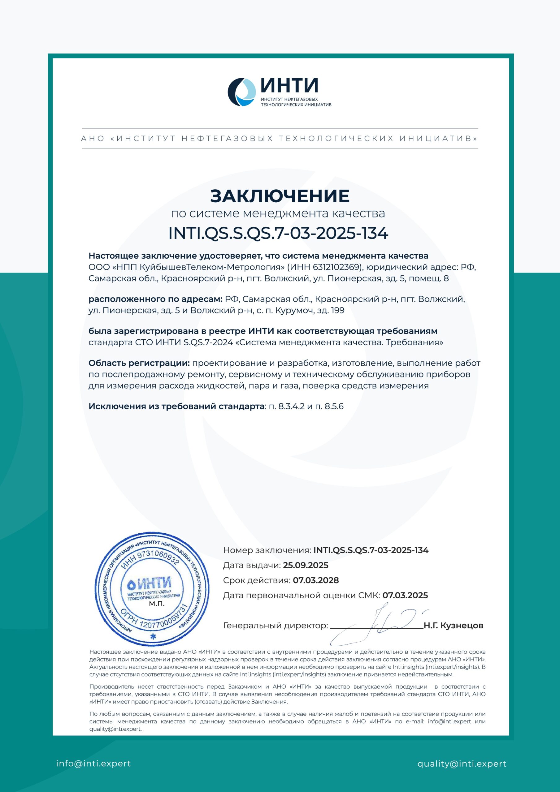 Заключение по СМК № INTI.QS.S.QS.7-03-2025-134,