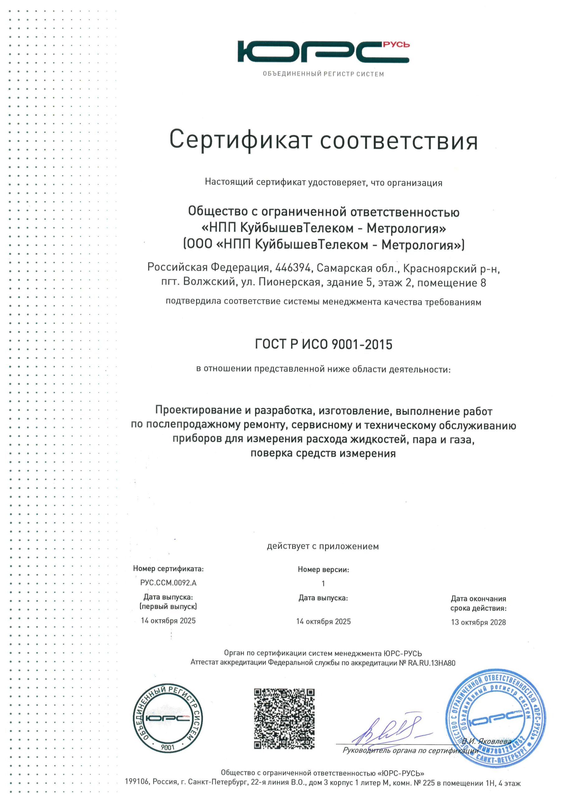 Компания НПП «КуйбышевТелеком-Метрология» (КТМ) успешно прошла проверку системы менеджмента качества (СМК)
